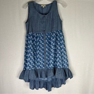 Kori America Dress Women’s Blue White Diamond Floral Sleeveless Hi Low Button S