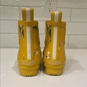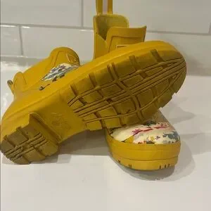 Cheerful yellow boots with a floral pattern. Ideal for rainy adventures.