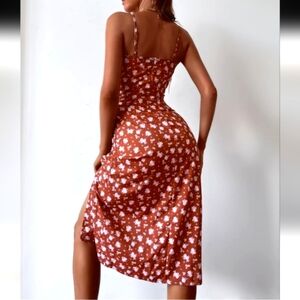 Womens Floral Rust Orange Midi Dress Back Zip Spaghetti Straps Slip Size Large