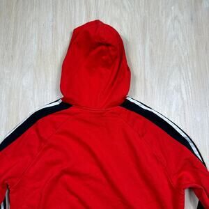 Adidas Red Hoodie Pullover Cropped Stripe Sleeve Leoflage Trefoil Sweater Large