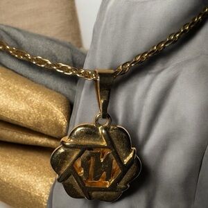 This elegant gold pendant necklace adds a touch of sophistication to any outfit. Perfect for any occasion.