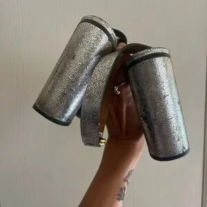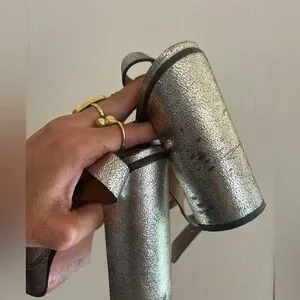 Chloè Gold Metallic 70s Leather Glam Platform Ankle Strap Sexy Disco Heels 37/7