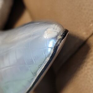 Elevate your look with these eye-catching silver boots. Features a chic croc pattern and sleek design.