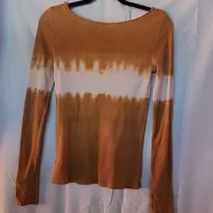 Free People Tan and White Ombre Long Sleeve‎ Top, Small Size