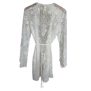 In Bloom by Jonquil Women's White Kimono Robe M Long Sleeve Belted All Over Lace