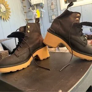 SOREL Women's Hi-Line Heel Lace Boots Black Size 7.5