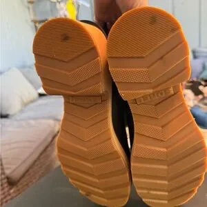 Suede/leather upper, fabric/synthetic lining, rubber sole