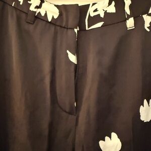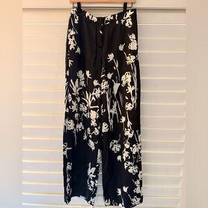 Elegant trousers with a striking black and white floral design. Ideal for versatile styling.