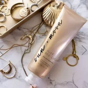 Sun + Moon daily facial exfoliator in a sleek gold tube. Perfect for skincare routines.