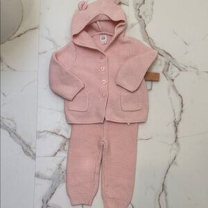 GAP Soft Pink Baby Knit Set with Hoodie