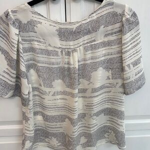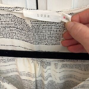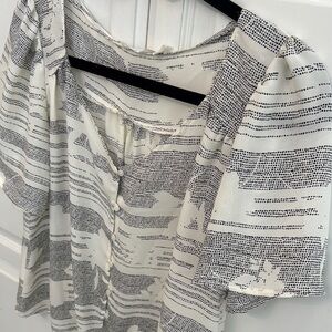 Lush Black and Beige Flutter Sleeve Blouse with Tie Front size M.
