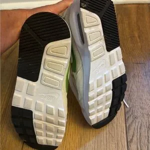 Chic white sneakers featuring vibrant green accents. Ideal for everyday style. VGUC-minimal wear