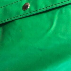Stay dry and stylish with this vibrant green hooded rain jacket. Perfect for any weather.