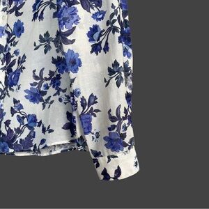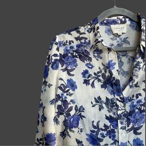 SEZANE Blue & White Floral Printed Lightweight Silk Button Down Pierro Shirt