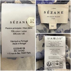 SEZANE Blue & White Ecru Floral Printed Lightweight Silk Cotton Button Down Pierro Shirt