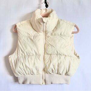 Cream Puffer Vest Women’s Small Medium Quilted Sleeveless Jacket Zip Front