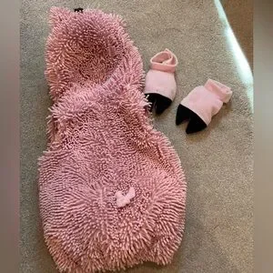 Dress your little one up as the cutest little pig this Halloween. The piggy costume by “Going Wild” is listed as 24 Months or a size 2T, but the costume really fits a much broader range. My 4 year old liked to play dress up in this. Soft chenille, has plenty of room for warm layers underneath. Zips up front. The only evidence of wear is some discoloration under each “hoof” on the elastic strap. Smoke free home.