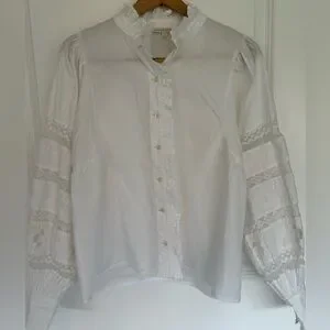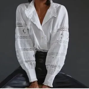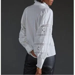 Anthropologie Love The Label Puff-Sleeved Lace Buttondown