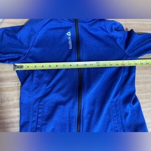 Reebok blue zipper front closure hoodie jacket with pockets. Women’s size M