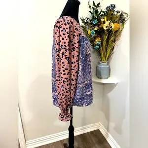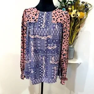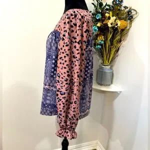 ANDREE BY UNIT Pink and Blue Patterned Blouse Tunic size Medium