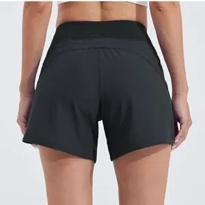 Stay comfortable and stylish with these black athletic swim shorts with a 5” inseam!