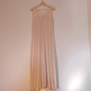 NEW Toteme Plisse Crinkled Scoop-Neck Maxi Dress in Cream Beige | size 32 / US 0