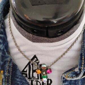 This necklace is uniquely designed with five stones and a flower arranged in a cross.