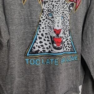 DAYDREAMER Def Leppard Too Late For Love Long Sleeve Crop Graphic Tee Gray