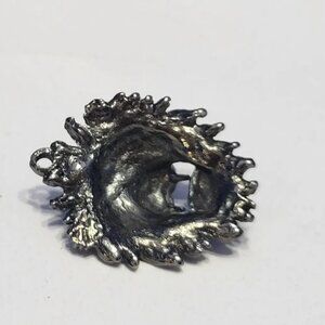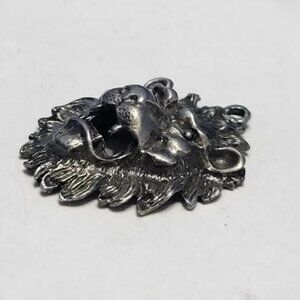 A very unique pendant made of silver tone mixed metal. It has an age appropriate patina and displays well!