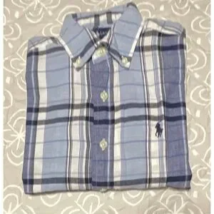 (2) Ralph Lauren long sleeve blue and white plaid shirt - button-down collar - 100% cotton - size 8/10