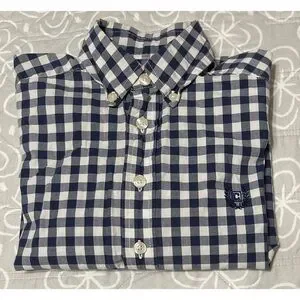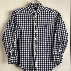 (1) Chaps long sleeve navy and white checked shirt - button-down collar - 100% cotton - size 8