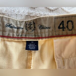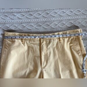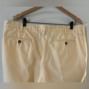 EUC excellent condition & quality! Designer. Light yellow, cotton flat front (no pleats) dress shorts by IZOD Saltwater Chinos. Cotton. Zipper, button closure. Measurements in photos. Front & back pockets. Smoke free home. Men’s size 40W.
