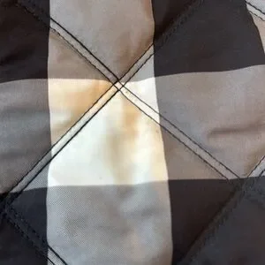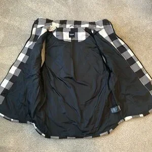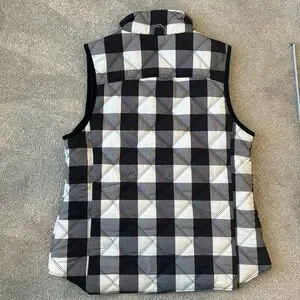 Kenzie women size large quilted vest buffalo plaid check black grey white