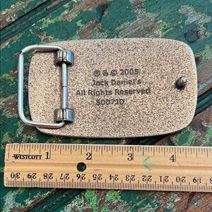 Stylish Jack Daniels belt buckle with intricate design. Perfect for any outfit.
