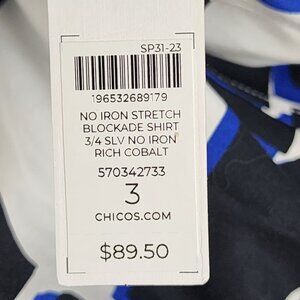 Chicos Shirt Womens 16 Multi Geometric 3/4 Sleeve Blockade Button Up NWT