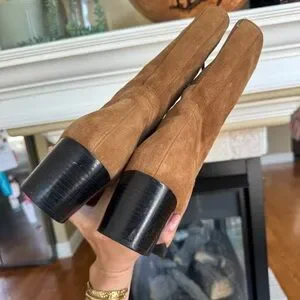 Hush Puppies Tan Heeled Suede Booties Square Toe Fall Western Boho Size 11