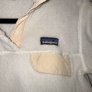 EUC Patagonia Polartec pullover. Four snap stand up collar, kangaroo pocket and breast pocket. Approximately 18” pit to pit.