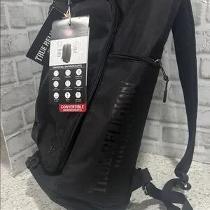 True Religion Men's Black Convertible Backpack Duffle Bag