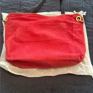 From Hammitt, the Daniel Rivet Large Red Zipper Gold Studded Shoulder Tote Bag features: