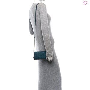 (NWOT) This is a MCM Calfskin Ottomar Wallet On Chain in Teal. This wallet is crafted of MCM's jacquard monogram canvas in blue, with a removable silver chain and leather shoulder strap. The flap opens to a partitioned brown suede and blue leather interior with card slots, a zipper compartment, and flat pockets. This MCM comes with a dusty and box. Please lokk at all pictures and if you have any questionsplease do not hesisitate to ask me.