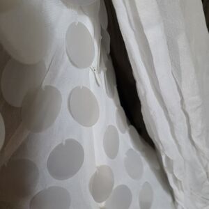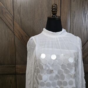 Elegant white mini dress featuring bold disc accents. size small. Great condition lightly worn.