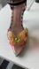 These heels are so much fun to wear and grab everyone’s attention. Worn about 8 times in 3 years. The heel is about 4” high. Size 7.5