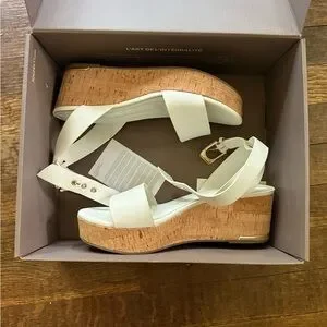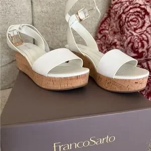 Franco Sarto Cream Wedge Sandals with Cork Sole