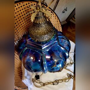 Add a touch of elegance to your home with this stunning iridescent hanging lamp. Its unique color shifts beautifully under different lighting, making it a captivating centerpiece.