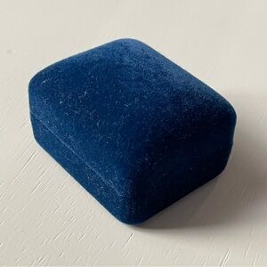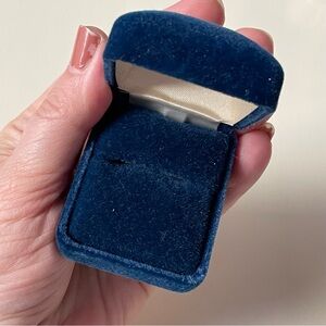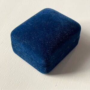 Vintage blue velvet empty Imperial Gold flip up ring box. Pretty blue exterior and interior. Kitsch Imperial Gold logo on the inside lid. Great size for storing a favorite ring.