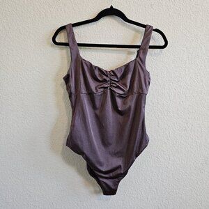Andie Symi Metallic Purple Ruched Sweetheart Open Back One Piece Swimsuit M*