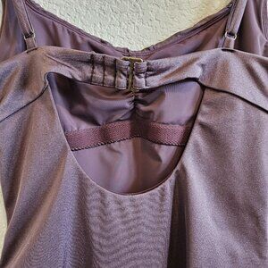 Andie Symi Metallic Purple Ruched Sweetheart Neckline Open Back One Piece Swimsuit M