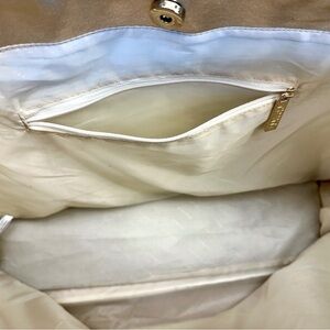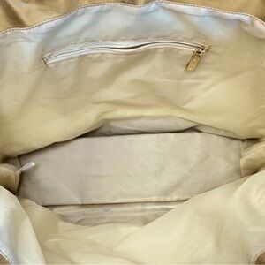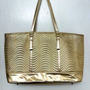 Elevate your style with this Versace tote. Features a stunning gold wave pattern. Ideal for any occasion.