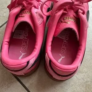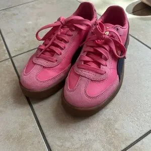 Bright pink sneakers with a sleek design. Perfect for casual wear. Comfortable and stylish.