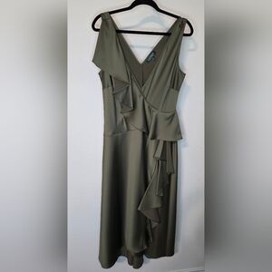 Lauren Ralph Lauren Olive Green Ruffle Midi Dress Size 14